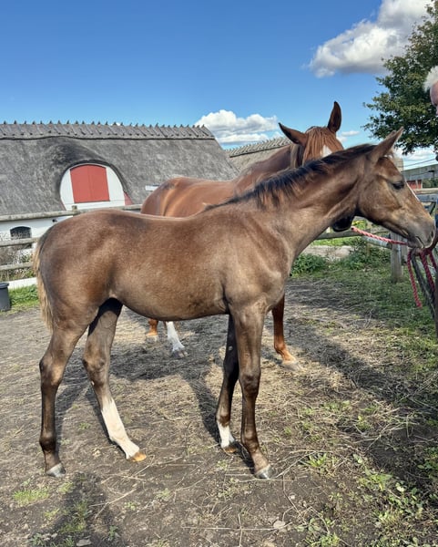 🌟 Gallardo’s Nera (Stute, geboren am 23. Mai 2025) Eine außergewöhnliche junge Stute mit einem wunderbaren Temperament, korrekter Konformation, kräftigen Beinen und drei ausdrucksvollen, elastischen Gängen. Nera ist Gallardos drittes Fohlen und setzt die herausragende Qualität und den Charakter der Linie deutlich fort. Ihre Mutter Gallardo wurde im Alter von 2,5 Jahren eingeritten und erwies sich als äußerst intelligent, lernwillig und leicht zu reiten. Sie hat bereits drei vielversprechende Fohlen hervorgebracht: - Super Trofeo (2022, von Asterix de Couleur) – verkauft bei der Elite Foal Auction 2022. Zeigt exzellente Springtechnik sowie bemerkenswerte Sorgfalt und Aufmerksamkeit beim Freispringen. - Superleggera (2023, von Asterix de Couleur) – zeigt die gleiche scharfe Intelligenz und auffälligen Springstil wie ihr Bruder. Die Großmutter Harmonie Hästak hat selbst erfolgreich bis zur Klasse M (1,40 m) geritten. Sie ist Vollschwester eines 1,50-m-Großpreis-Pferdes und hat mehrere Halbschwestern und -brüder, die bis zum Niveau der Mittleren und Höheren Klasse im Springen antreten. Harmonie hat auch Nachkommen bis zur Mittleren Klasse hervorgebracht, darunter Centenario, der im Finale der 6-Jährigen beim Falsterbo Horse Show platziert wurde und jetzt an Shane Sweetnam in Wellington verkauft ist. 📞 Für weitere Informationen und Videos kontaktieren Sie bitte +46 736 775 747. 🎥 Es sind auch Videos von Nerias Geschwistern und Großmutter verfügbar. Verpassen Sie nicht die Chance, eine zukünftige Springstars zu besitzen.