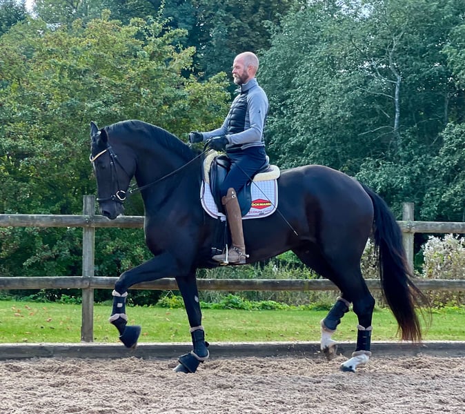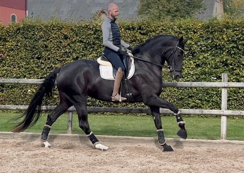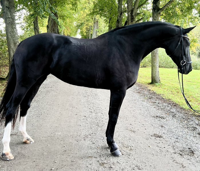 Big powerfull mare with high potensial. Good gaits with kneeaction showing a fantastic potensial for the collecting work. High ridebility and a very easy-going horse. In training under GP-rider. Horse located south of Sweden(Lund) Mail : jenniejohan74@gmail.com