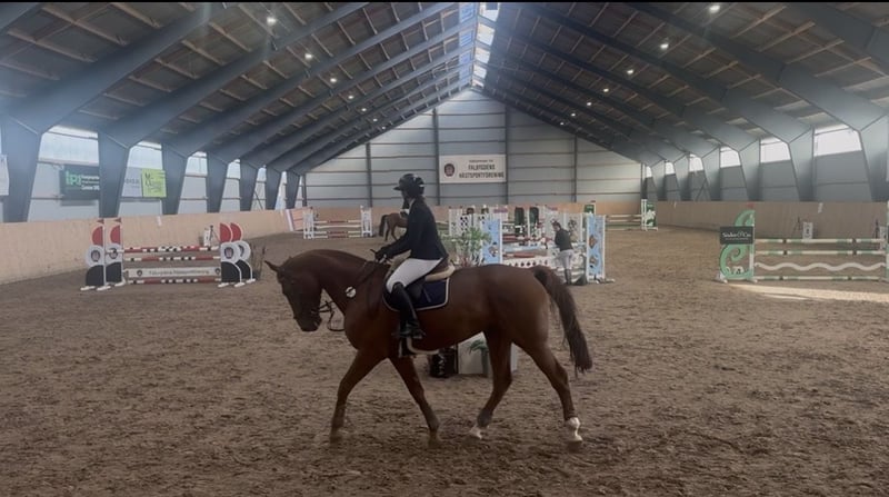Mare after I’m Very Special F (SWB). She is a horse who always gives her all for her rider. She jumps everything you point her at and can jump very big, with a great scope. She is very careful with her feet and rarely touches a pole. We have competed up to 1.10 meters, but have trained courses up to 1.30 meters. I’m Soleil has a lot of power from her hind legs, which you really feel when riding and jumping, as she likes to give her best in every stride. She is very easy to adjust, both to lengthen and shorten her stride. She has the capacity for advanced levels, and I hope to find a rider who wants to continue developing her further. Easy to handle and relaxed at shows and meetings, extremely kind horse who loves cuddles.