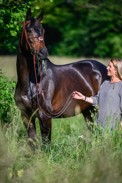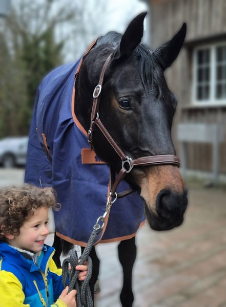 Zu verkaufen, bildschöne dunkelbraune CH-Stute. Chamana ist 11 jährig, Hufschmid fromm, Anhänger/ Selbstfahrer geübt. Sie liebt es ins Wasser(Thur) zu gehen, läuft über schmale Brücken, kennt Kutschen und kann problemlos auf der Fahrerwiese mit Kutschenverkehr geriten werden. Kennt Kühe, Helikopter, Kleinfugzeuge, Traktoren etc. Da sie eher ein unsicheres Pferd ist benötigt sie in einem neuen Gelände ein Begleitpferd oder einen sicheren Reiter. Ich reite sie alleine aus, aber sie kennt mich und das Gelände schon länger. In grösseren Gruppen fühlt sie sich pudelwohl und kann problemlos auch hinterher beim galoppieren kontrolliert werden. Auf der Wiese wird sie nie zu heiss oder stark. Bockt und steigt nicht. Beim Putzen kann sie etwas stutig sein, hat aber noch nie gebissen. Sie kennt Doppellonge und mag Bodenarbeit. Ist allgemein zum Führen ganz fein. Chamana koppt, daher wünsch ich mir für sie einen Platz an dem sie mehr und längeren Weidegang hat als bei uns. Wunschplatz, privat mit kleiner Gruppenhaltung oder Auslaufbox mit viel Weidegang ganz jährlich ist ein muss. Sie ist beschlagen könnte aber auch barhuf laufen. Sie ist kein Gewichtsträger. Chamana ist mit mir Springturniere gelaufen jedoch suche ich wegen der Haltung einen Freizeitreiter der es schätz ein gut ausgebildetes Pferd im Gelände zu reiten, Bodenarbeit, Doppellonge etc zu machen. Platz vor Preis. Gebe Sie nur ab wenn die Haltung für mich zu 100÷ passt und sie eine Bezugsperson bekommt. Bei ernsthaften Interesse bitte per Whatsapp/Tel. 079 743 74 33 Anina Hallermann