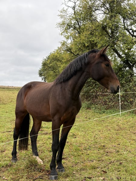 **Verkaufsanzeige: Schweres Warmblut Stute** Wir bieten eine wunderschöne, schwere Warmblut-Stute zum Verkauf an. - Geburtsjahr: 2022 - Farbe: Brauner - Stockmaßgeschätzt: 165 cm - Eignung: Fahren - Ausbildungsstand: roh Diese charakterstarke, wüchsige Stute zeigt sich bereits jetzt ausgeglichen und nervenstark im täglichen Umgang. Beste Vorraussetzungen um einmal sicher vorm Wagen zu gehen. Die Stute ist gut sozialisiert und hat einen freundlichen Umgang mit Menschen und anderen Pferden. Sie ist im Umgang brav und lässt sich problemlos händeln. Weiterhin ist bei Interesse noch ein Vollbruder geb. 2023 zu verkaufen. Der junge Wallach ist auf den letzten beiden Bildern zu sehen und wäre die perfekte Ergänzung für ein zukünftiges Passgespann. Für weitere Informationen oder zur Vereinbarung eines Besichtigungstermins freuen wir uns über Ihre Nachricht!