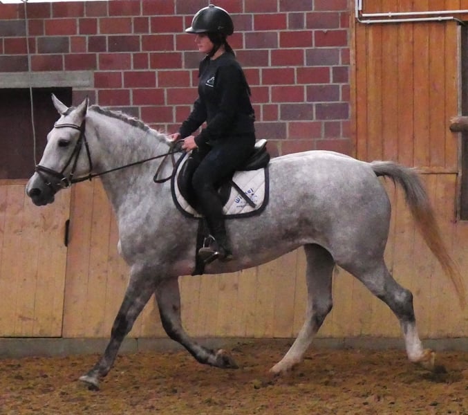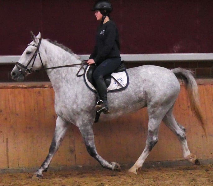 Name: Jazmin Year of Birth: 2018 Height: approximately 16.1 hh Gender: Mare Training Level: Ridden for leisure Jazmin is a sturdy warmblood cross mare with a passport but without a known pedigree. She is used for leisure riding in the terrain, on the arena, and in the indoor riding hall. Jazmin is well-behaved in handling and gets along excellently with other horses. If she has piqued your interest, please contact us at 0176 62495567.
