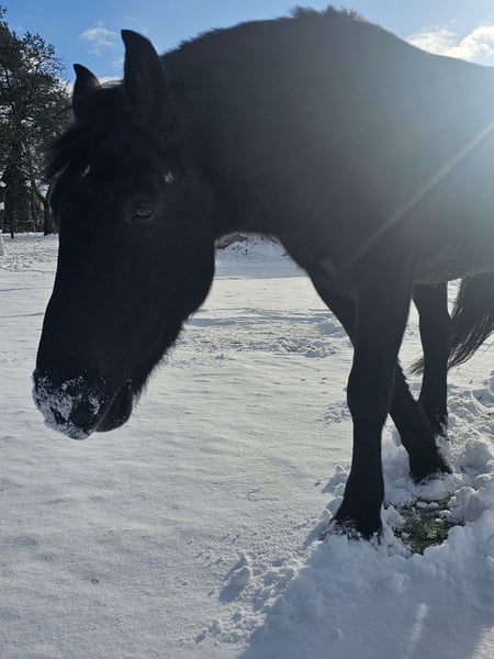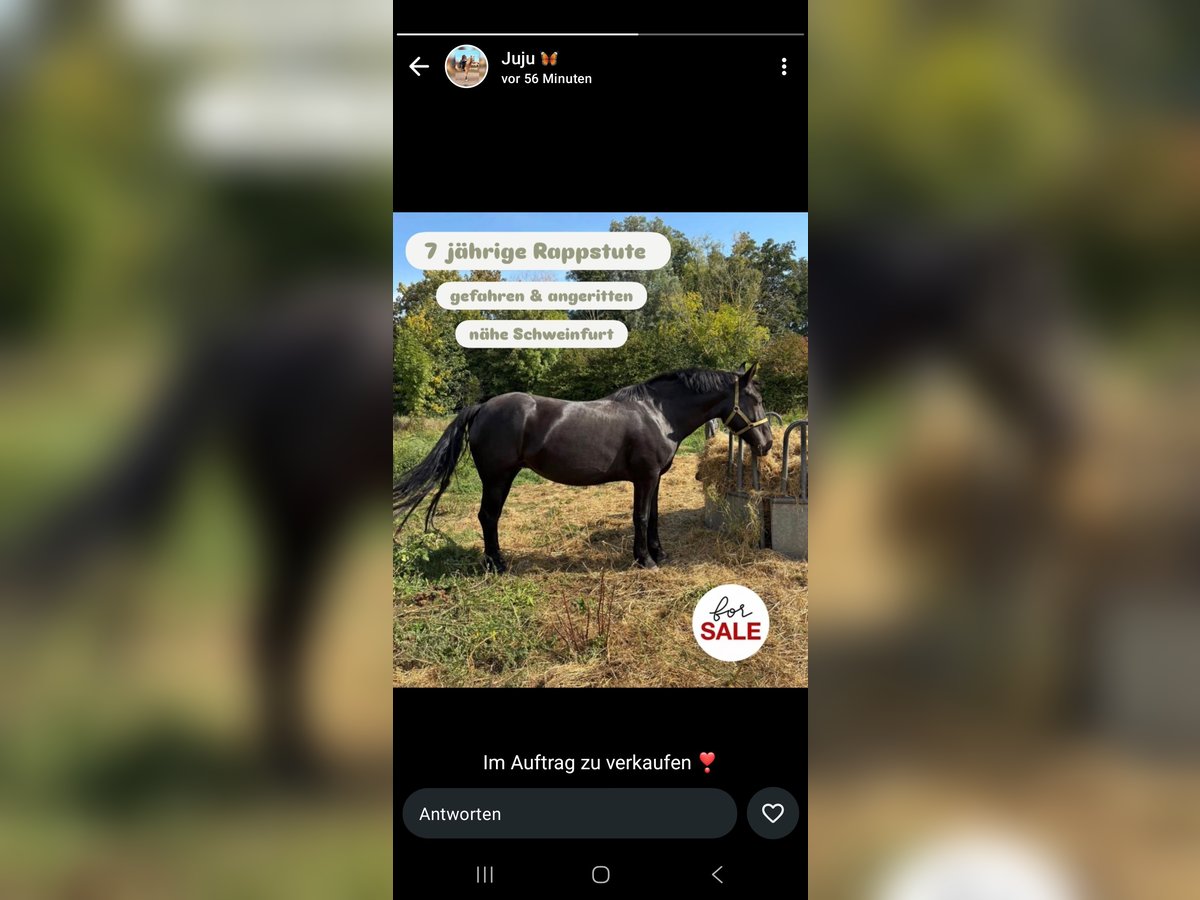 Hello, I am offering my beautiful young mare "Bella" for sale. She is 7 years old, a heavy Warmblood, and suitable for larger and stronger riders. She stands approximately 155 cm tall. Due to her young age, she is looking for a rider who can provide her with a sense of security from the saddle. According to her previous owner, she is also well-schooled. I have only ridden her in the field, where she requires a rider who can give her confidence. However, she is not mean or aggressive. Her teeth have recently been checked. She receives regular osteopathy treatments and is also regularly seen by the veterinarian. Currently, we are focusing more on groundwork training. She is completely healthy. Of course, a pre-purchase exam can be arranged at the buyer's expense. Why I am selling her: I am an insecure re-entrant rider and am looking for a horse that I can simply enjoy riding at a walk. The horse should give me confidence. Initially, I thought we could grow together as a team. But the longer Bella has been with me, the more dominant she has become. Therefore, I have decided to find a different solution. The price is negotiable. However, she will not be given away for free. A trade for a reliable, balanced, and older trail horse would also be considered. Feel free to contact me :)