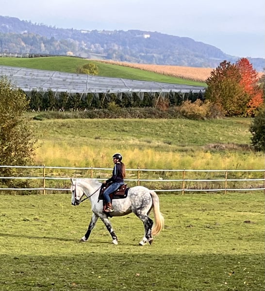 Für meinen Lino, ein bildhübscher 10 jähriger Wallach ( wird im März 11 Jahre) suche ich einen Bestplatz. Lino ist ein intelligenter und aufgeweckter Kerl mit viel Power und Freude an der Arbeit unter dem Reiter und bei der Bodenarbeit. Derzeit wird er von einer guten und einfühlsamen Reiterin im Bereich Westernreiten trainiert. Sie hat auch bereits viele Trainingseinheiten in der klassischen Reitweise mit Lino perfekt absolviert. Lino ist im Gelände und in der Halle geritten. Er geht alleine oder in der Gruppe gerne ins Gelände. Wie schon gesagt, er hat power und ist keine Schlaftablette und benötigt daher einen erfahrenen Reiter. In der Reithalle macht er alles problemlos und motiviert mit. Natürlich hinterfragt er schon mal, ob der Reiter es wirklich ernst meint. Lino hat ein Stockmaß von 1.63 m und einen rahmigen Körperbau. Er hatte bisher keinerlei gesundheitlichen Probleme und ist top gesund und robust. Er läuft ohne Hufeisen und hatte auch hier keine gesundheitlichen Probleme. Er steht bei mir in einer kleinen gemischten Gruppe im Offenstall. In Boxenhaltung wird er nicht verkauft. Ich erlaube mir bei einem ernsthaften Kaufinteressenten, vorab den Stall zu besichtigen in den Lino dann kommen soll. Er kann natürlich auch gerne bei mir im Offenstll eingestellt bleiben. Kann man alles besprechen. Lino hat erst vor einem 3/4 Jahr einen exklusiven Westernsattel der Marke Deuber& Partner, Flexfix Vario, bekommen (Neupreis ohne Zubehör 4.278.-€, Rechnung und Sattelpass vorhanden) Der Sattel sollte mit übernommen werden, zu einem Preis von 3.500.-€ Mir ist wichtig, dass Lino auch in seiner Zukunft einen perfekt sitzenden Sattel hat. Daher ist es angedacht, dass der Sattel mit verkauft wird. Es gibt auch noch einen Dressursattel von Bates passend für Lino zum Verkauf. Bei Interesse kann dieser gerne mit dazu erworben werden. Bei Fragen vorab bzw. zu einer Terminvereinbarung stehe ich gerne per Mail zur Verfügung. Für‘s Probereiten erhebe ich eine Gebühr von 45.-€ Ein Probereiten ist auch nur bei echten Interesse möglich. An Händler und Schulbetriebe wird er nicht verkauft.