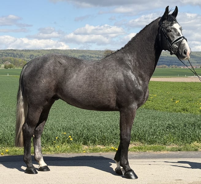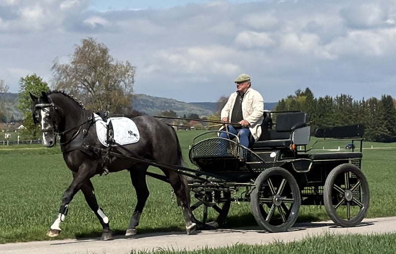 Sehr schöner Wallach der mit sehr viel Reitqualität und bestem Charakter ausgestattet ist. Er ist ein ,- zweispännig gefahren, sowie im Gelände und in der Halle geritten. Er eignet sich bestimmt auch bei weiterer Ausbildung für den gehobenen Fahrsport