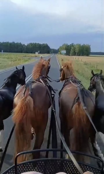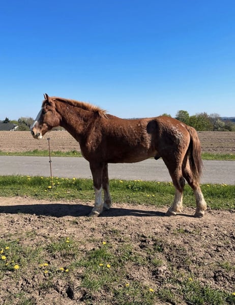 Auf der Suche nach einem zuverlässigen Kutschgespann? Zum Verkauf steht ein Gespann schwerer Warmblut Wallache im Alter von 3 und 4 Jahren mit einem Stockmaß von ca. 160 bis 165 cm. Die beiden sind bereits an das Fahren gewöhnt und eignen sich ideal als Kutschpferde. Im Umgang zeigen sie sich besonders brav, ruhig und menschenbezogen. Sie leben aktuell im Offenstall in der Herde, kennen jedoch auch die Boxenhaltung. Beide kennen bereits den Reiter, sind unter dem Sattel jedoch noch nicht weiter ausgebildet und können hier bei entsprechender Förderung weiter aufgebaut werden. Insgesamt handelt es sich um ein sehr angenehmes, ausgeglichenes Gespann mit viel Potenzial für Freizeit und Fahrsport. Preis 11.800 € VHB Kennenlernen ist nach Absprache in 54689 Daleiden Deutschland möglich. Transport kann organisiert und übernommen werden. Krankheiten oder Allergien sind nicht bekannt. Eine Ankaufsuntersuchung kann selbstverständlich auf Wunsch durchgeführt werden. Für das Ausprobieren berechnen wir 35 €. Dieser Betrag wird beim Kauf selbstverständlich angerechnet. Alle Angaben ohne Gewähr. Preisänderungen vorbehalten. Ein Onlinekauf ist möglich. Für Anfragen oder weitere Informationen erreichen Sie uns unter: Telefon: +49 172 9516779 E Mail: m.horsesforlife@gmail.com Wir freuen uns auf Ihre Kontaktaufnahme!