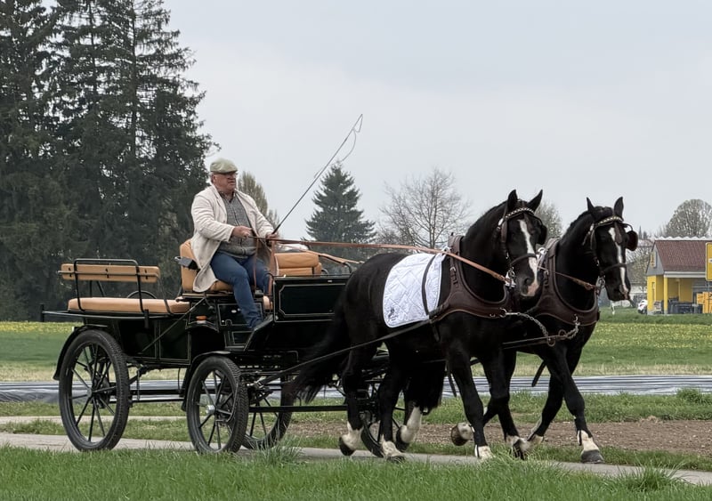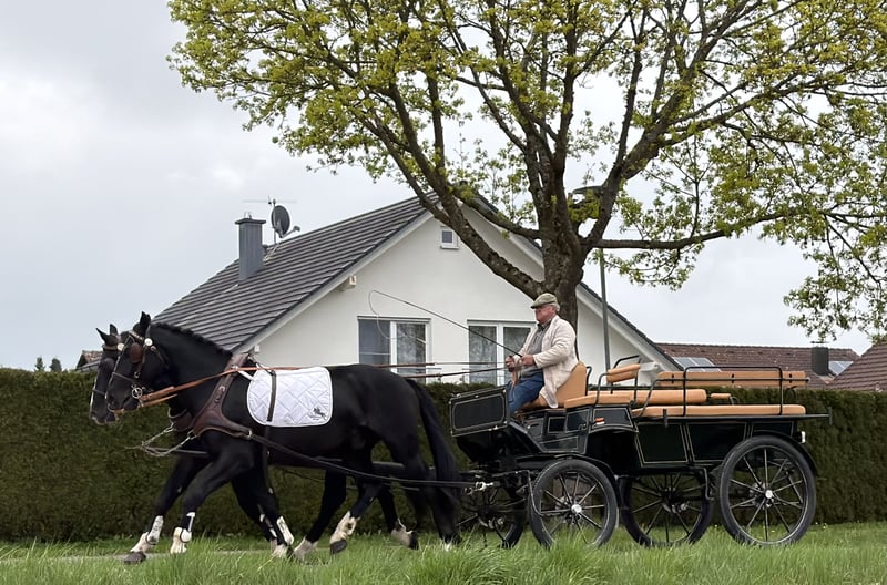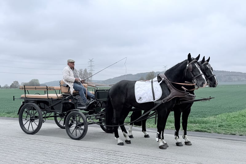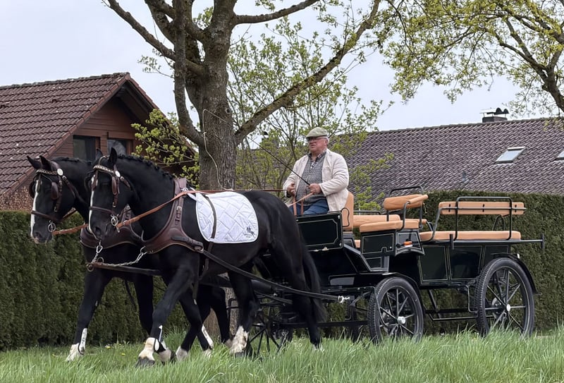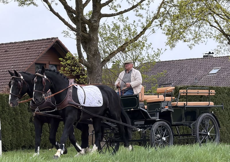 Super harmonisches Gespann Wallache die straßensicher gefahren sowie in der Halle und im Gelände geritten sind. Beide sind im Umgang total gelassen und unkonzentriert. Das richtige Gespann für Planwagenfahrer , Hochzeiten und alle die Spaß haben möchten