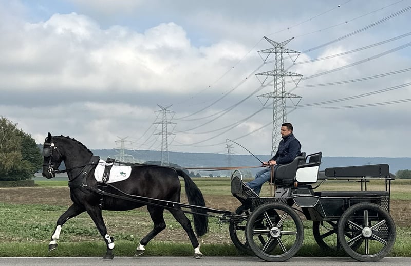 Great and experienced gelding who has been driven in one to six horses. He has already participated in parades and weddings, showing himself to be very sensible and well-behaved. In addition, he is ridden both in the field and in the arena.