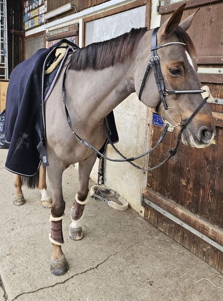 A la venta, una preciosa y bien formada yegua de 9 años de sangre Selle Français, hija de Up to You x Quick Star. Gzena es una yegua muy cariñosa y pegajosa. Tiene una gran afinidad con las personas. En el trabajo diario, siempre está motivada y es muy amable. Además, no es una yegua que se ponga nerviosa ni se ponga a saltar. A Gzena le gusta mucho ir sola o en grupo al campo. Es completamente segura en el tráfico. Esta pequeña yegua de color castaño con marcas de fuego tiene experiencia en competición. Sin embargo, se emociona un poco y no es la más fácil a la hora de saltar. Si está interesado y tiene más preguntas, no dude en ponerse en contacto. Para la prueba de salto, se cobrará una tarifa de 50 CHF, que se descontará en caso de compra.