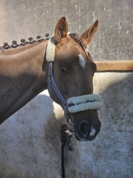For sale: Beautiful 9-year-old Selle Français mare by Up to You x Quick Star Gzena is a very lovable and affectionate mare. She is highly human-oriented and always eager to work. She is never spooky or bucking. Gzena enjoys hacking both alone and in a group. She is completely traffic-safe. This small chestnut mare has competition experience; however, she can become lively and somewhat challenging when jumping. If you are seriously interested or have further questions, please feel free to contact us.