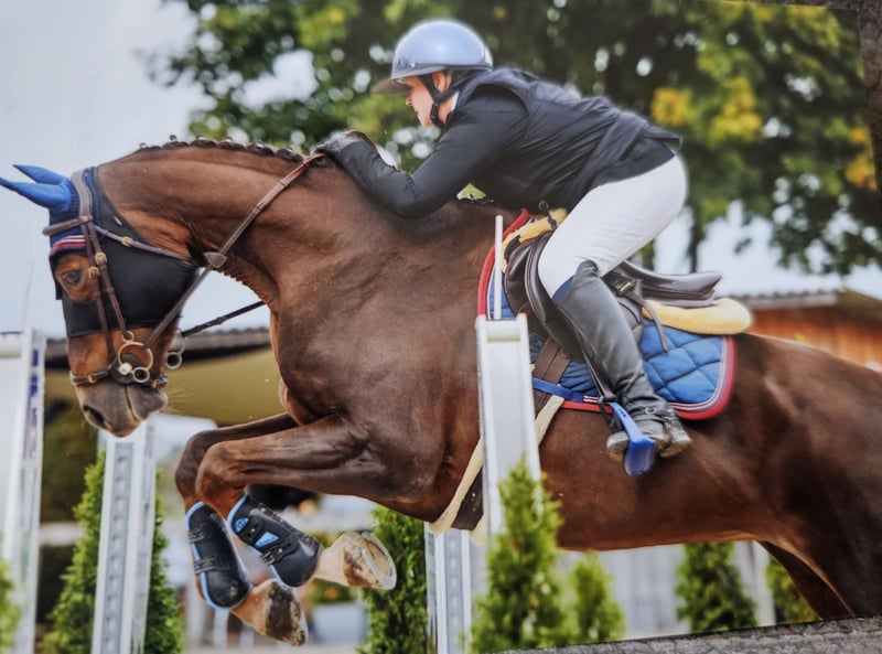 Na sprzedaż piękna, 9-letnia klacz rasy Selle Français, pochodząca od Up to You x Quick Star. Gzena to bardzo sympatyczna i przywiązana klacz. Jest bardzo otwarta na kontakt z ludźmi. W codziennej pracy jest zawsze zmotywowana i uprzejma. Dodatkowo, nie jest kłusakiem ani buhajkiem. Gzena chętnie pokonuje teren zarówno samotnie, jak i w grupie. Jest całkowicie pewna w ruchu ulicznym. Ta mała, ognista klacz o koniowatym umaszczeniu ma doświadczenie turniejowe. Jednak podczas skoków czasami się podnieca i nie jest do końca łatwa w prowadzeniu. W przypadku poważnego zainteresowania i dodatkowych pytań, prosimy o kontakt.