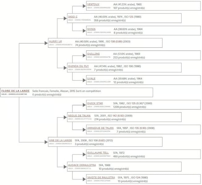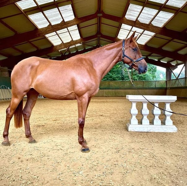 Flore est une très jolie jument SFO compacte de 2016 avec un croisement AAxSF. Son père Hurry UP (ISO 138) est un étalon qui a produit de bons chevaux de CSO et fait un très bon père de mère. On retrouve la plupart des chefs de race de AA dans ses origines tels que: Ventoux, Quilling, Nogaro, Nithard x2. Le père de Hurry Up n'est autre que Iago C un vrai chef de race avec une multitude de produits ayant un ISO supérieur à 140. Sur la souche basse de Flore, nous retrouvons comme père de mère, l'exceptionnel Negus de Talma dont on peut citer notamment dans sa production, Tango d’Ecry, ISO 160, 4ème du Grand Prix 3* de Munich, 5ème de la Coupe des Nations de Linz avec Marianne Schindele, Thitja de Lombut, classée en CSI 3* au Maroc, Terentia d’Asnières, classée en CSI 3* et Coupes des Nations au Portugal. En père de deuxième mère, nous retrouvons le bon reproducteur SF Guillaume Tell avec de nombreux gagnants dans sa descendance et un très bon ratio de produits au-dessus de l'ISO 140. Flore a produit à date, deux poulains: - L'un en croisement avec le très bon Hitchcock Bois Margot. Poulain de 2024. - L'autre en croisement avec le fameux Topinambour. Pouliche de 2025. Flore a de l'arthrose (radiographie) dans un jarret mais peut tout à fait être montée pour du loisir. C'est une jument facile à vivre et très attachante. Elle est actuellement vide et prête pour la saison de monte 2026. Nous lui cherchons une bonne maison.