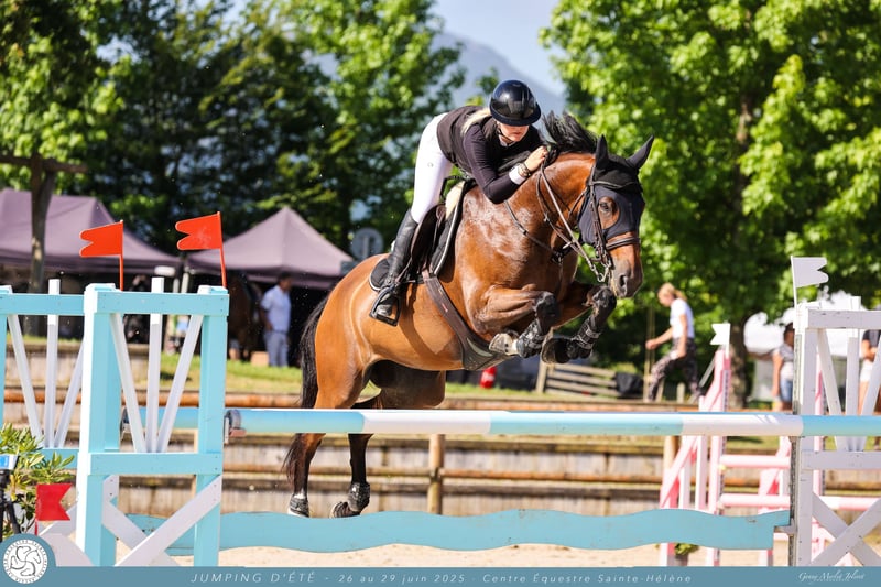 Fidelia est une jument de 11 ans par Dollar de la pierre ayant couru jusqu’à 140cm avec une cavalière de 18 ans. Elle classe 130/135cm. Elle a beaucoup de sang, de la force et des moyens, très gentille à pied, en extérieur…