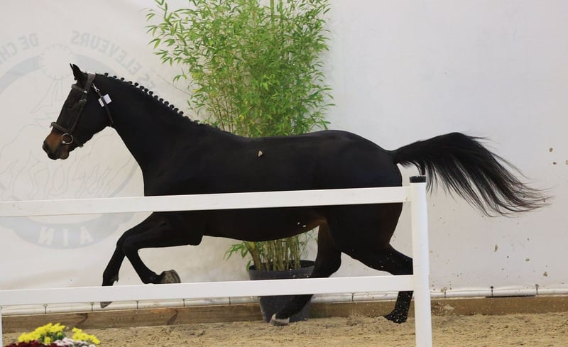 Wunderschöne, energiegeladene 3-jährige Stute, die auf einem Zuchtbetrieb in der Region Vittel (Vosges) aufgezogen wurde. Sie wurde Ende Oktober für das Nationale Finale der 3-Jährigen im Sport vorgestellt. Eine bereichernde Erfahrung für diese charmante Stute, die im Rahmen des Finales die zweithöchste Bewertung im Typ erhielt, nachdem sie sich bei der regionalen Auswahl im Springen unter Reiter ausgezeichnet hatte.