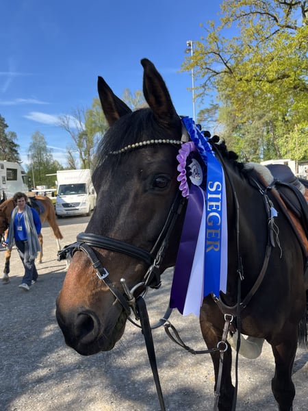 Leider muss ich mich aufgrund der Aufgabe des Reitsports von meinem Pferd trennen. Er ist ein absolut liebenswerter, braver Partner, jedoch nicht für Anfänger geeignet. Beim Springen zeigt er stets vollen Einsatz – er springt wirklich über alles und ist bereits bis 110 cm auf Turnieren gelaufen. Auch beim Ausreiten ist er mit Begeisterung dabei und macht immer Spaß. Er ist jeden Tag hoch motiviert, möchte immer etwas machen und arbeitet zuverlässig mit. Dabei hat er keine Unarten, ist sehr sozial, menschenbezogen und verschmust. Ein echtes Herzenspferd, das nun den passenden Menschen sucht. Abgegeben wird er nur in beste Hände, wo er weiterhin gefördert und geliebt wird.