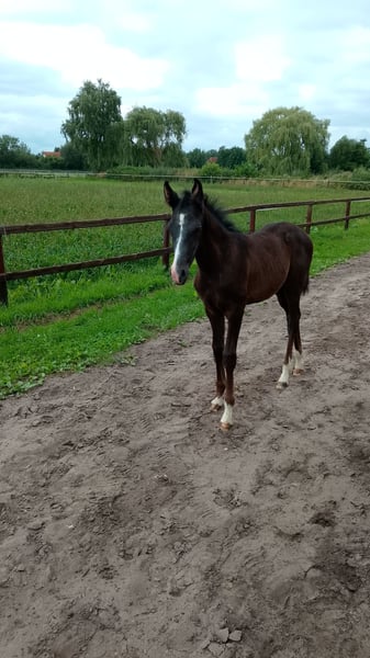 For sale is a promising Shagya Arabian stallion, born in 2025. With his elegant black coat and a height of over 160 cm, he will be a true eye-catcher. I do not wish to raise him, hence he is offered at a lower price. Jador was awarded the foal premium from Vzap and the golden ribbon. His father, Javino, is an absolute sport horse producer, and on his mother's side, Galida from Thamias also brings athletic performance. This stallion is characterized by his versatility and is excellently suited for various disciplines. Whether in dressage or show jumping, or even for trail rides – he has the best prerequisites to be successful in riding. He possesses a balanced temperament and shows a high willingness to learn. His friendly nature makes him an ideal partner for riders of all experience levels. He lives in a large foal herd and may turn gray. The farrier comes at regular intervals to ensure a perfect start. If you are interested or have further questions, please feel free to contact me.