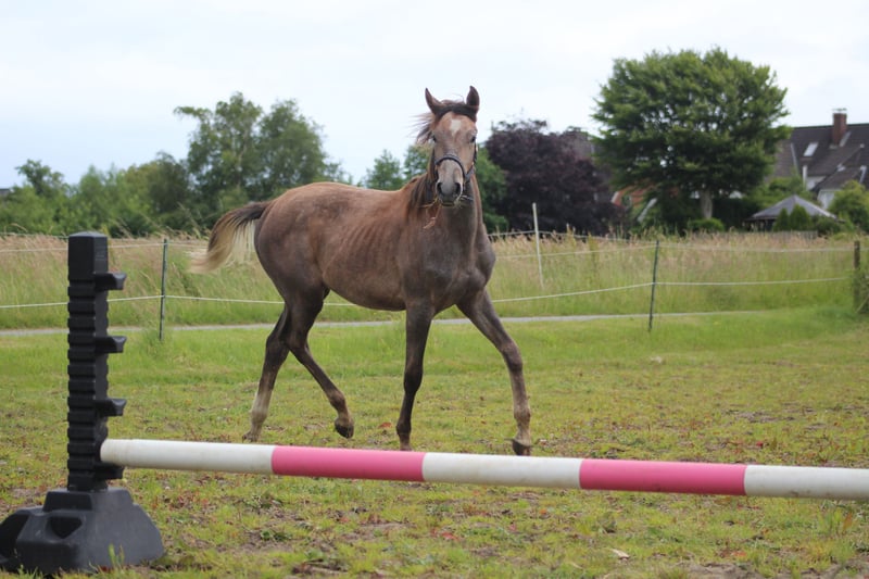 Zum Verkauf steht eine wunderschöne Shagya Araber Stute, geboren im Jahr 2023. Bei der Fohlenschau erhielt sie eine Prämie. Sie ist ein Rotschimmel und hat zur Zeit ein Stockmaß von 157 cm. Diese talentierte Stute ist bereit, mit Ihnen gemeinsam neue Höhen zu erreichen. Sie ist gut sozialisiert, sehr selbstbewusst und vereint alle Vorzüge ihrer Rasse. Aufgewachsen im Herdenverband mit ihrer Familie. Sie ist regelmäßig entwurmt, geimpft und dem Schmied vorgestellt. Ihre Ausbildung ist altersgemäß. Ideal für Reiter, die auf der Suche nach einem vielseitigen Partner sind, der sowohl im Sport als auch in der Freizeit überzeugt. Bei Interesse oder weiteren Fragen stehe ich Ihnen gerne zur Verfügung!