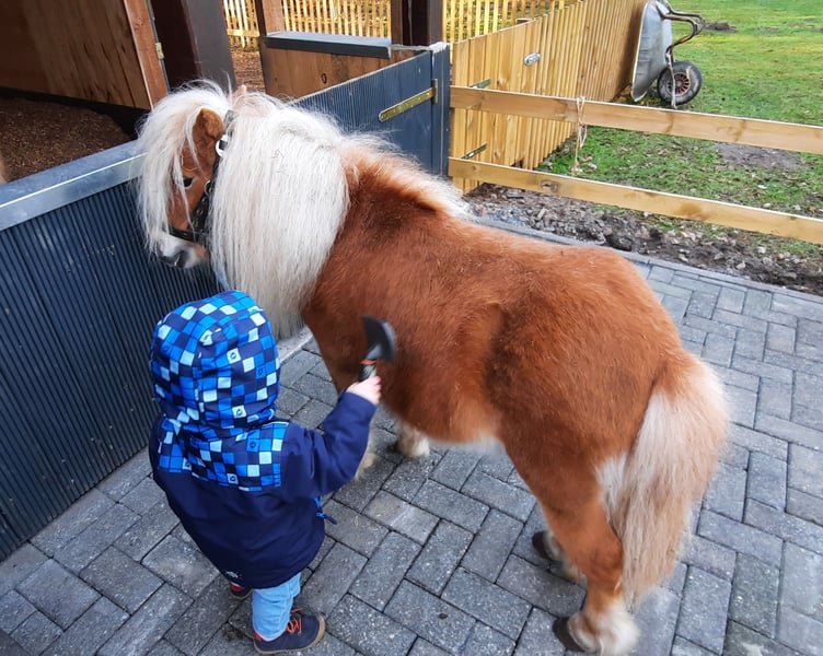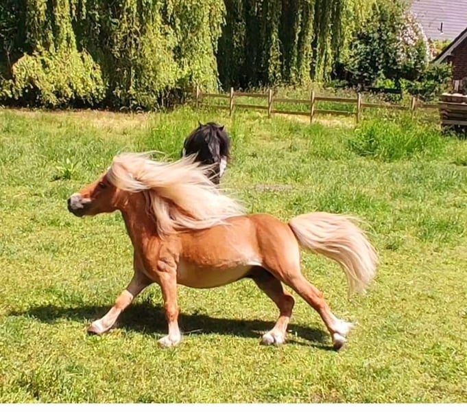Dieser super tolle Shettyhengst sucht zusammen mit seinem Sohn (Wallach) ein neues für immer Zuhause mit Familienanschluss. Leider muss ich mich aus privaten Gründen von meinen beiden Shettys trennen. Joker (im Pass Joop) hat einen super tollen Charakter. Er kennt geführtes reiten, auch schon auf Kindergeburtstag und Nachbarschaftsfest. Er ist ein- und zweispännig gefahren, kennt es von Kindern geputzt und in Begleitung geführt zu werden. Es sollte dennoch immer ein Erwachsener ein Auge drauf haben. Beim Hufschmied ist er immer sehr umgänglich. Natürlich hat auch er, Shettytypisch, mal seinen Dickkopf und versucht ihn auch durch zu setzten. Alles in allem ist er aber ein umgängliches Pony. Mit seinem Sohn versteht er sich richtig gut und ich würde mir wünschen, wenn die beiden zusammen bleiben (wird aktuell auch von mir bevorzugt). Bei mir leben die beiden im Offenstall mit stundenweise Weidegang, was ich mir für das neue Zuhause ebenfalls wünsche, da die beiden sehr gerne draußen sind. Außerdem wünsche ich mir ein Zuhause in der Nähe mit Besuchsrecht. Wenn dieses tolle Pony zusammen mit seinem Sohn nun ihr Interesse geweckt hat, dann würde ich mich über eine Nachricht, in der Sie sich und das neue Zuhause kurz vorstellen, freuen. Wer beide Ponys zusammen nimmt bekommt einen Nachlass von mir. Zubehör wie Kutsche, Geschirr, Sattel usw können bei Bedarf mit erworben werden.