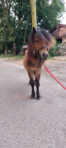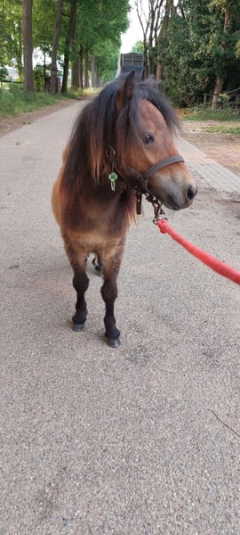 Tally is a curious and friendly Shetlander. He has a passport and chip and is registered with the Shetlander studbook. He already walks along with a halter. He also allows you to pick up his feet and groom him. The girls from the stable (10 years old) walk him around. If you would like more information, you can call or message 0031-6 19626363.
