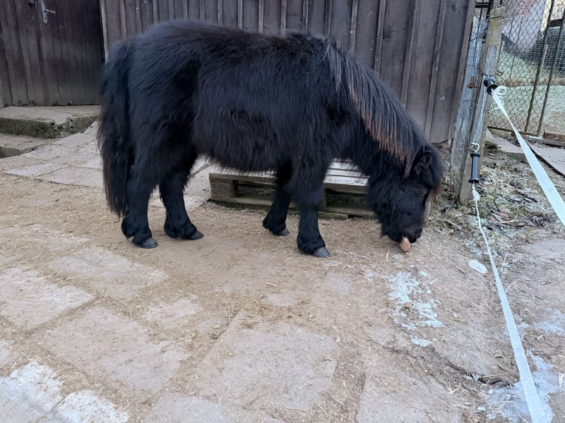 Ich verkaufe schweren Herzens meinen kleinen Shetty Hengst, da er sich mit seinem Partner leider nicht mehr versteht. Taco von Honey Bee 04.24 geboren Roter Pass Er kennt den Umgang mit Hunden, Kindern und Katzen auch anderen Pferden und Kühen sind wir schon öfter begegnet dies stört ihn überhaupt nicht und ist dabei immer total gelassen. Er lässt sich sicher führen im Straßenverkehr und ist immer ruhig und unerschrocken. Auch um Silvester muss man sich bei ihm keine Gedanken machen, dort steht er ruhig draußen und frisst und macht sich Nix aus dem Lärm. Er bleibt ruhig angebunden stehen und lässt sich auch von Kindern putzen auch wenn es mal länger dauert. Er gibt alle vier Hufe und ist Schmiede und Verladefromm. Er hört super auf Stimme um ihn in der Geschwindigkeit zu kontrollieren, dabei ist er aber ehr der langsame. Im Winter muss er nicht eingedeckt werden, jetzt durch die warmen Temperaturen mussten wir ihn Scheren ( low trace Schur ) da er wirklich dichtes Winterfell hat. Ich kann ihn mir wirklich gut als späteres Kinder „Reitpony“ vorstellen, wenn man erstmal eine Verbindung zu ihm hat, geht er mit einem durch dick und dünn. Mir ist es wichtig das er ein gutes Zuhause bekommt, daher gilt bei mir absolut Platz vor Preis.