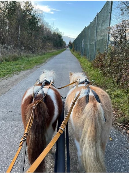 Beautiful, sweet, 5-year-old, brown and white pied, mini Shetland gelding with papers, height approx. 84 cm, very trusting, perfect for children for carriage driving and riding, also suitable for therapeutic riding. More information and further photos and videos by phone or whatsapp. Delivery possible.