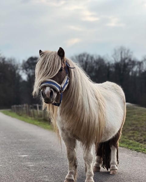 Beschikbaar Shetland-ruin met volledige papierlagen, bontkleur Mushroom Stahoogte: 95 cm Heeft al negen veulens op zijn naam staan Van deze negen zijn er twee hengsten Afkomstig van een bont- en niet-bontmoeder Afkomstig van Mushroom met een Mushroom-ruin of, anders wordt het veulen drager van Mushroom Hij heeft een grote manen die hij doorgeeft aan zijn veulens