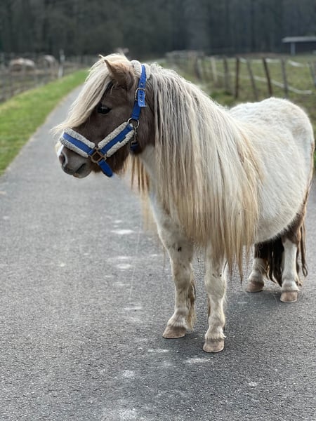 Available Shetland stallion with full papers, piebald coat (mushroom pattern) Height: 95 cm (approximately 15.0 hh) He has already sired 9 foals, including two colts among them. His offspring are a mix of piebald and non-piebald. He is the sire of a mushroom-pattern foal with a mushroom mare, or otherwise the foal will carry the mushroom gene. He has a lush mane that he passes on to his foals.