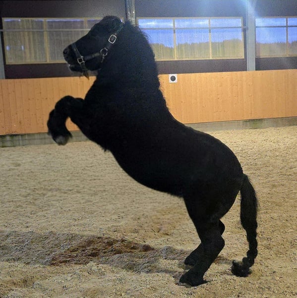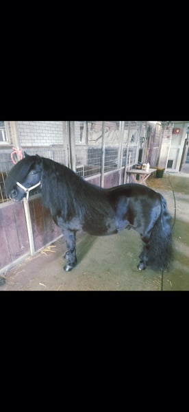 Dreamy Stallion for Sale Milo is a 7-year-old black stallion, an exceptional horse who has been with me for over a year. A TRUE MIRACLE MARE!!! He hails from the Netherlands, where he was used for breeding. With an excellent pedigree and high gait scores, he was licensed there. Since joining me, he has not been used for breeding but has been trained as a show pony. He quickly masters the complete circus program and loves free work. He stands at 102 cm (approximately 10.1 hh) and is a strong, well-built stallion with a beautiful head, a lovely neck, and good conformation. He is a real cuddle bug ☺️ Due to personal reasons, I need to part with him, and I am looking for an owner experienced with stallions who can give him a loving home where he can continue to be supported and where he has companions to play with. **Please note: he is not a children's pony and is still a stallion!** He has not yet been backed or broken in. Feel free to contact me for more questions or videos. The pony is located in the district of 84367 in Lower Bavaria.