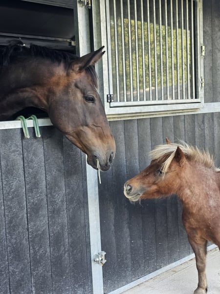 Zeer brave en beeldschone pony merrie. Was bij ons als gezelschap voor onze grote paarden. Laat zich braaf leiden en poetsen. Zeker ook een geweldig pony voor voor de koets. Mogelijk drachtig van onze AMHA-hengst. Bij ons altijd gezond geweest. Loopt in de kudde ook goed samen met grote paarden.
