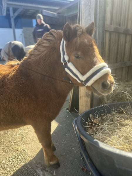 Wir sind auf der Suche nach einem 5-Sterne-Zuhause für unsere geliebte Fuchsstute. Diese Entscheidung fällt uns nicht leicht, jedoch fehlt uns die Zeit für sie und zum Rumstehen ist sie einfach zu schade. Toffee ist eine am 03.04.2024 geborene Fuchsstute mit einer aktuellen Größe von ca. 75 cm. Sie ist eine liebe, kleine, neugierige Maus, die gerne mal ihren Besitzer testet. Sie kennt den täglichen Umgang und ist sehr menschenbezogen. Außerdem ist sie schmiede- und verladefromm, steht brav beim Putzen und liebt es, betüdelt zu werden. Wir suchen einen Menschen, der sie fördert. Ich könnte sie mir später auch gut als Kutschpony vorstellen. Sie wünscht sich ein Zuhause ohne Großpferde und nicht zu weit entfernt. Wir freuen uns über eine ausführliche Nachricht, wenn sie euch gefällt.