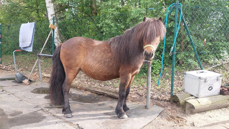 Verkaufe meine org. Shetlandpony Stute Arielle sie ist 6jährige, braune stute mit viel Behang, 1,02m groß und eine sehr Menschen bezogene und lernwillige Stute. Sie ist im Mai 2019 geboren und seit 2020 in meinem Besitz. Mai 2022 wurde sie in Seelitz in das Stutbuch 1 als Staatsprämienstute eingetragen. 2023 und 2024 hatte sie je ein Fohlen. Die jeweils zum Fohlenchampionat in Moritzburg waren und dort bei den vorderen Plätzen platziert waren. Jetzt tragend für April/Mai 2026. Kleine Kinder saßen auch schon drauf was sie ohne Probleme mit gemacht hat, lässt sich gerne von jedermann ob groß ob klein putzen und führen. Bei ernsthaften Interesse könnt ihr euch gerne melden und da gebe ich gerne weitere Infos. Besichtigung auch jeder Zeit möglich nach Absprache. Es ist kein notverkauf, Ratenzahlung nicht möglich und "letzter Preis" anfragen bitte auch nicht.