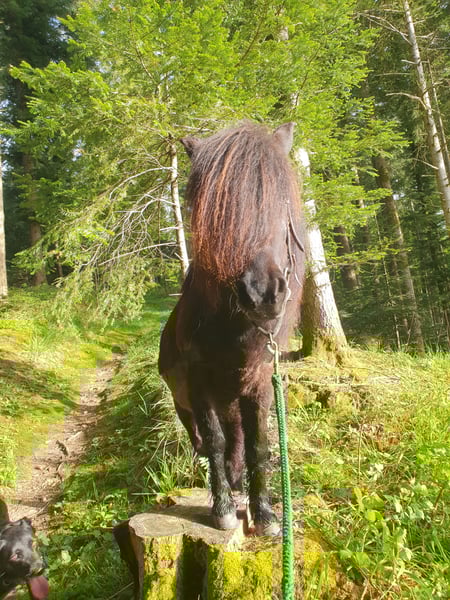 Ich bin eine Shettystute die sehr viel spass hat etwas zu unternehmen sowie kleine Kinder durchs Gelände tragen. Auf dem Platz Bodenarbeit oder Freilongieren wenn jemand die Geduld hat kann man mir auch Zirkuslektionen beibringen. Mit mir zusammen steht noch ein Isländerwallach da könnten wir zusammen was unternehmen(Mutter / Vater Kind)ausreiten ist doch was.
