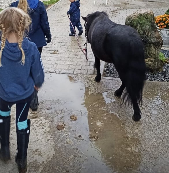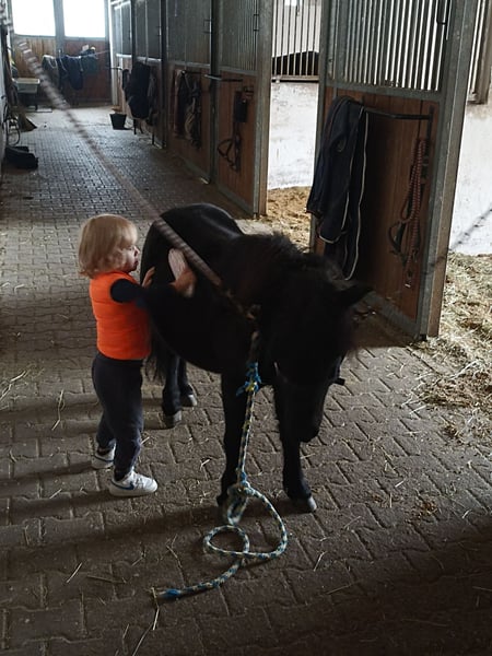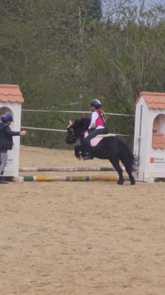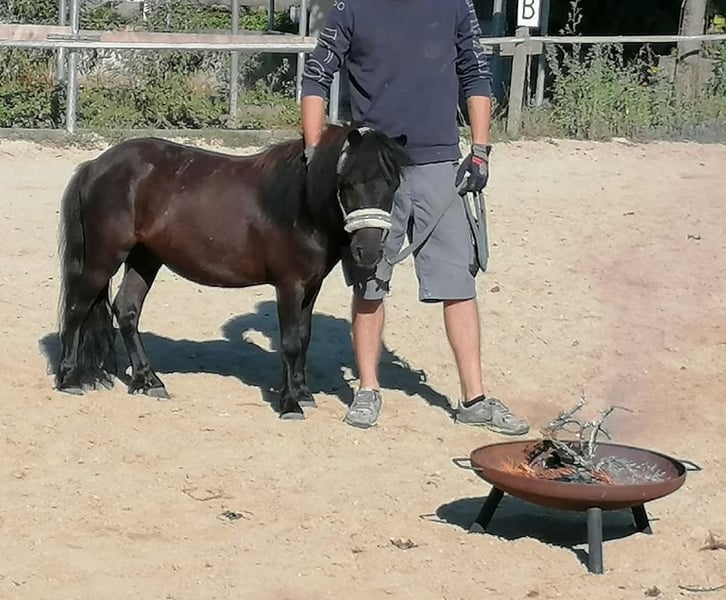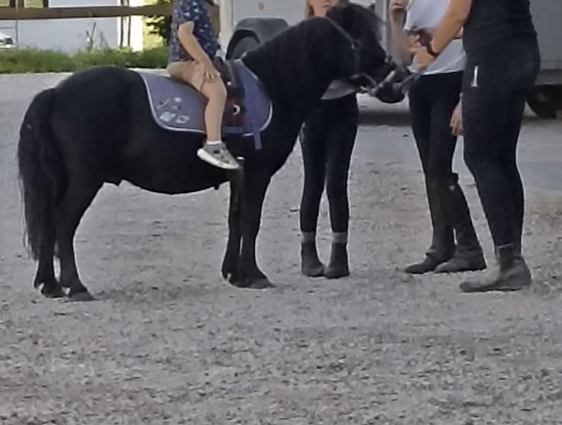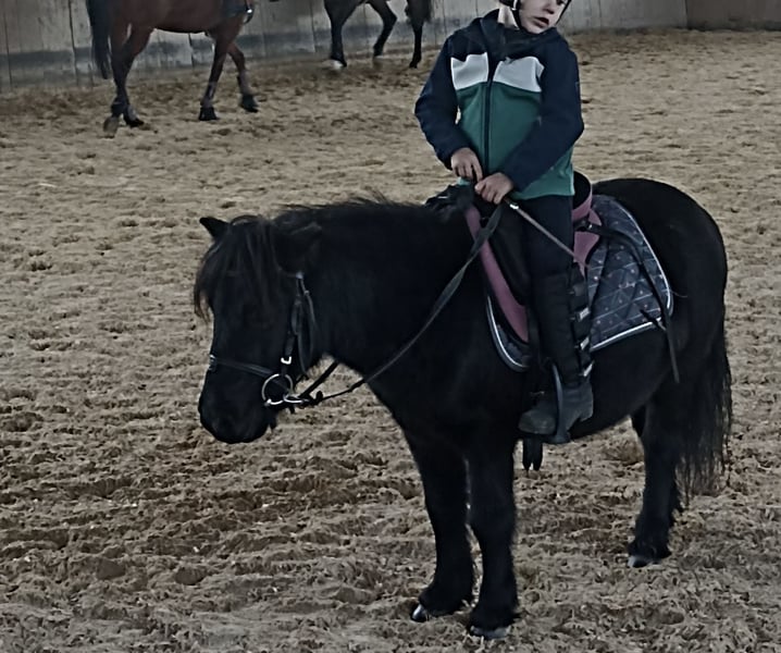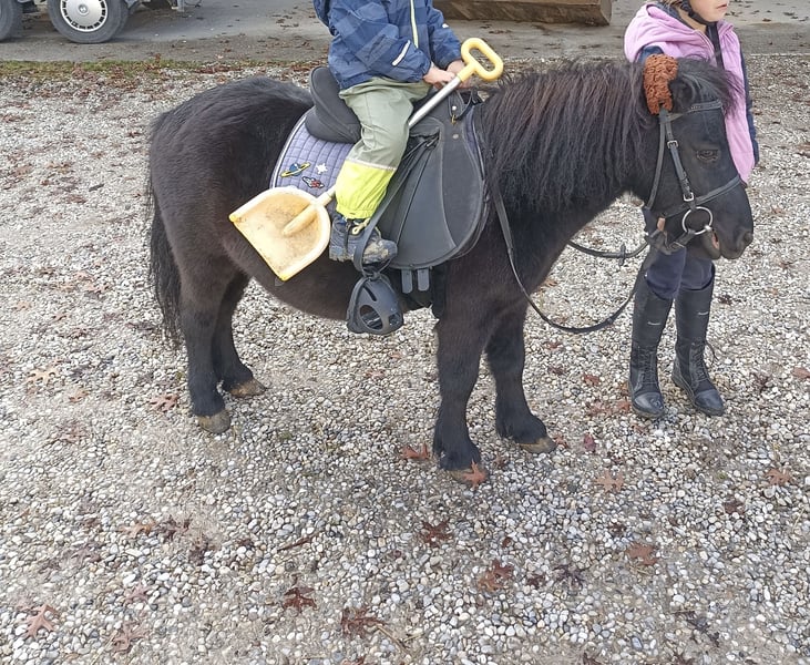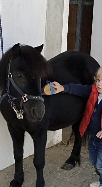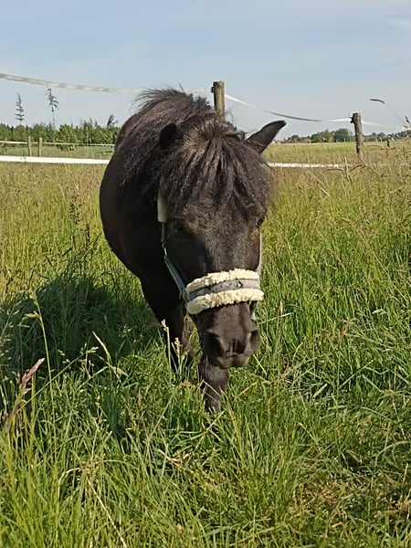 Unser Mr. Rakete ist ein 13-jähriger Shetty-Wallach mit dunklem Fell und einem Stockmaß von ca. 90 cm. Er ist vielseitig ausgebildet: geritten, gefahren und bestens vertraut mit der Bodenarbeit. Besonders hervorzuheben ist sein natürliches Talent für Handarbeit und Zirkuslektionen. Auch als Handpferd ist er ein zuverlässiger Partner und erkundet souverän das Gelände. Trotz seines dominanteren Charakters ist er gut verträglich und findet sich in jeder Herdenkonstellation problemlos zurecht. Bei uns durfte er bereits in Führzügelklassen und Reiterwettbewerben Erfahrungen sammeln. Ebenso genießt er es, als Turnierbegleiter mit im Hänger unterwegs zu sein. Aufgrund des Umstiegs auf ein größeres Pony suchen wir für unseren kleinen „Raketenmann“ ein neues, liebevolles Zuhause mit passender Aufgabe. Es handelt sich ausdrücklich um keinen Notverkauf – wir wünschen uns für Mr. Rakete ein passendes, liebevolles Zuhause und nehmen uns die Zeit, die richtige Familie für ihn zu finden. Bis dahin ist er bei uns weiterhin zuverlässig als vierbeiniger Rasentrimmer im Einsatz.