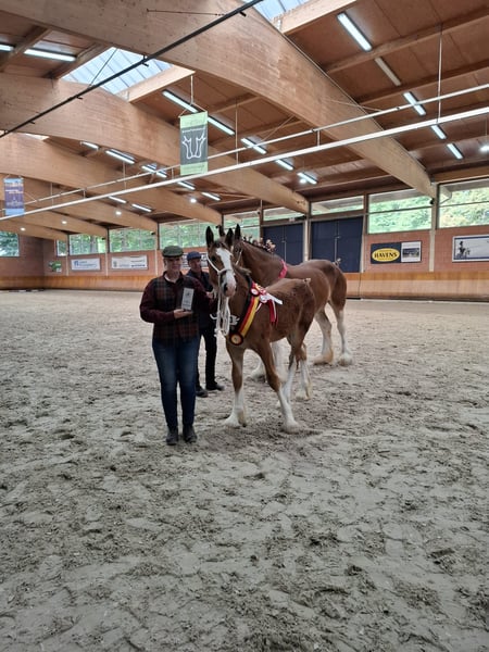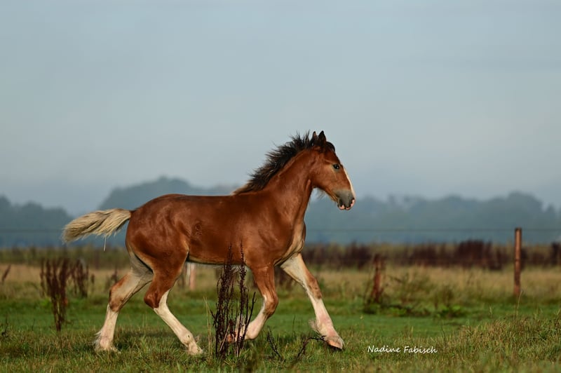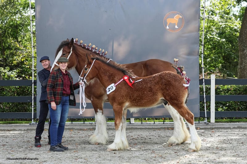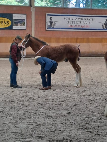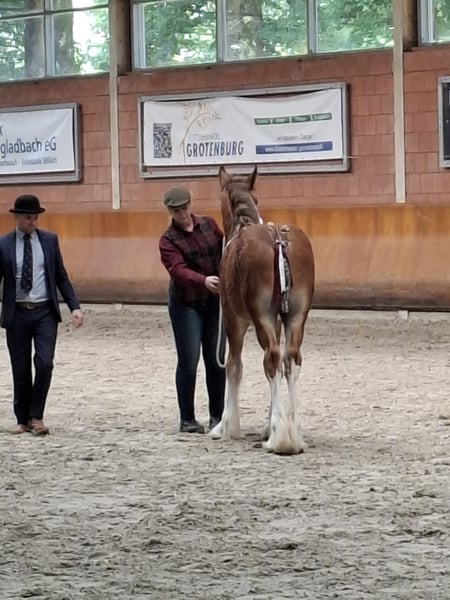 For sale: Stunning Shire Stallion Are you looking for an impressive and powerful Shire stallion? Then this young, baroque colt is the perfect choice! Born in 2025, he exudes strength and elegance with his beautiful chestnut coat. Champion of Germany and first place in the colt foal class. This young colt combines the typical Shire characteristics with a baroque build, making him not only strong and robust but also a true eye-catcher. Ideal for enthusiasts of large, stately horses who are seeking a reliable and impressive partner. Registered with the SHS in England. Next year, he will be eligible to participate in the stallion licensing. Interested? Feel free to contact us for more information or to arrange a viewing. A horse that will definitely attract attention!
