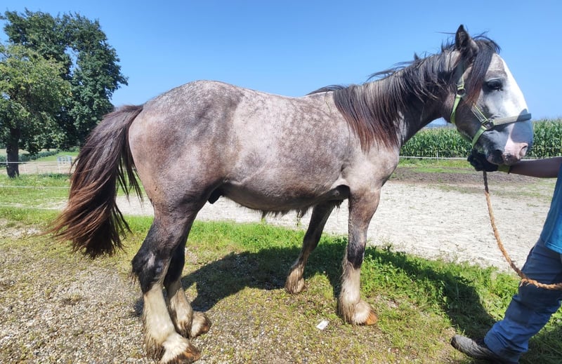 Impressive Shire Horse Stallion for Sale – a true highlight for horse enthusiasts! Born in 2024, this majestic grey Shire stallion impresses with his commanding stature and friendly demeanor. As a classic Shire, he is an excellent companion for leisure riding and outdoor activities, offering exceptional presence and strength. The stallion is healthy, well-groomed, and ideally suited for those seeking a reliable, characterful leisure horse. Please feel free to contact me for more information or if you are interested. Viewings and trial rides are available by appointment.