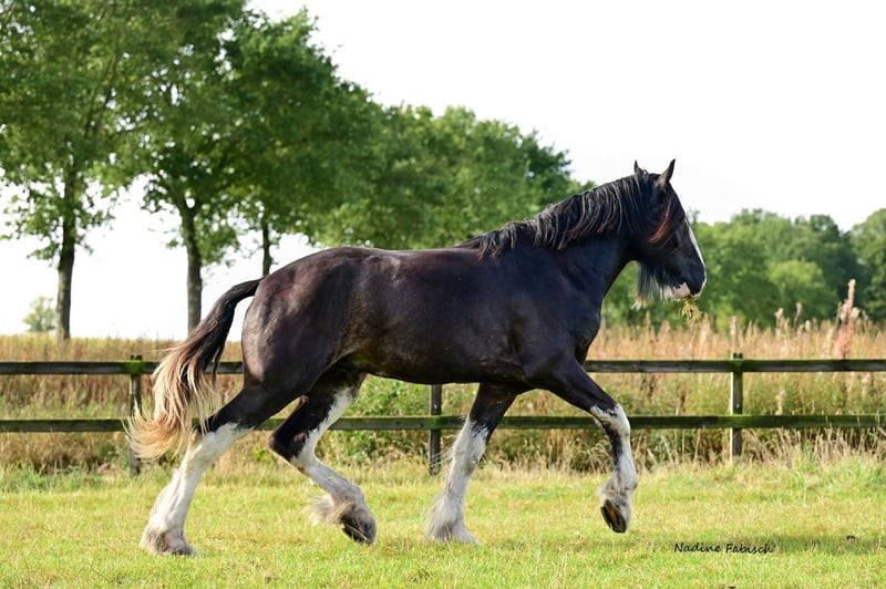 Zanna's Stable Bentley, nacido en mayo de 2023. Posee un pasaporte oficial de Shire registrado en la SHS y en el studbook, y fue aprobado como semental en la aprobación de potros esta primavera. Shire es Histamoor Athoss y mide 1,97 m, con la expectativa de que Bentley también alcance esa altura. La madre es Old Croft Elegance y mide 1,85 m. Ella trabaja bajo silla. Bentley tiene un carácter amable y equilibrado, incluso en terrenos desconocidos. Esto lo demostró durante la Exposición de Caballos Shire Alemana en Wickrath el pasado fin de semana (6 de septiembre), donde obtuvo el primer puesto. En la Exposición Nacional de Shire de los Países Bajos el 13 de septiembre, también logró el primer puesto en su categoría.