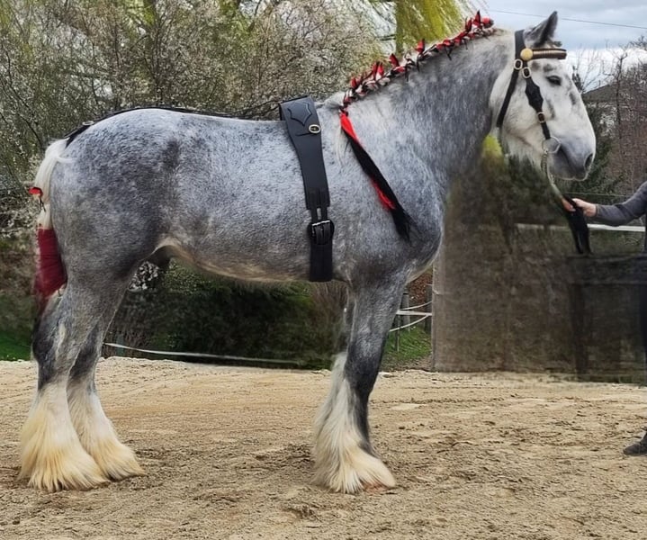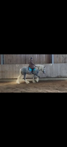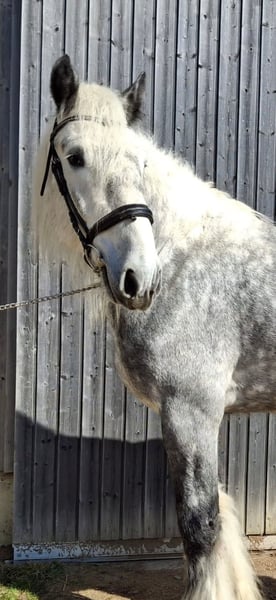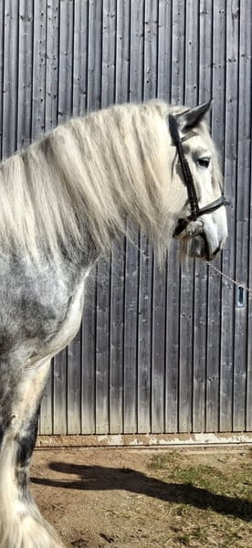Unique Opportunity: Our stunningly beautiful, well-mannered, and lifetime-approved breeding stallion Primus, registered with the English Shire Horse Society, is seeking a new home. Currently, he stands at 1.85 meters and is expected to grow further. He was raised in an open stable environment with other horses (stallions and geldings) of varying ages until the start of his training. In 2024, Primus was approved for the second time as a breeding stallion, securing his lifetime status. He impressed especially with his appearance—embodying the "sporty type" of Shire Horse, making him well-suited as a riding horse. He is also certainly conceivable for work in harness. Primus is well-behaved and good-natured for a stallion, but experience with stallions is absolutely necessary, even for a gentle one like him. As a riding horse, he is still at the beginning of his training due to his age. With proper encouragement, there is definitely potential for development. He is ridden in all three gaits and shows motivation and willingness to move. Currently, Primus is barefoot and manages well. Traveling by trailer is also not an issue. We only place our animals in the best hands and age-appropriate homes, which is why we take ample time for potential buyers. It is also important to us that the horse has a say in the decision, as the chemistry must be right for our animals as well. We would be delighted to arrange an informal meeting with Primus as a "Shire Horse Day or Weekend," allowing for a relaxed and stress-free introduction. Primus resides near Bad Füssing. Accommodation with excellent dining options is within walking distance of our farm. Several beautiful thermal spas are also nearby, making a short vacation in our area worthwhile. Non-riders are also warmly welcome. We also offer guided rides and hikes with our gentle giants in beautiful nature. Less experienced riders are welcome to join, and in such cases, the horse will be led from the ground. Gift vouchers for these activities are available and have made for delightful (birthday) surprises. Further impressions of our horses can be found on our WhatsApp channel. If interested, we are happy to send the link. We look forward to your message.