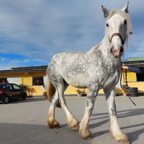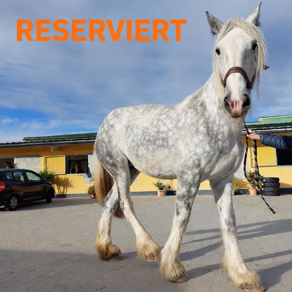 ✨ Elegant Shire Mare – Perfect for Leisure Riding ✨ For sale is a beautiful Shire Horse mare, born in 2014. This impressive grey mare stands at an imposing height of 1.87 m and has a majestic presence. She impresses with her gentle, calm nature and is ideally suited for leisure riding — whether for relaxed hacks, walks, or simply enjoying quality time in the countryside. She is friendly, well-mannered, and enjoys human contact. Due to her age, we are now looking for a caring home where she can find peace and enjoy her life in a loving environment. She is being offered with a protection certificate and at a special price of €900 instead of €5,900. It is important to us that she goes to responsible owners who will appreciate and care for her. This exceptional mare is a true heart horse — perfect for those seeking a large, gentle Shire and looking for a reliable, honest leisure partner.