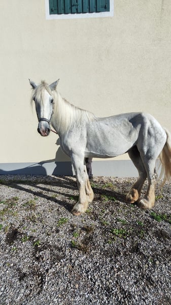 ✨ Elegante y Majestuosa Yegua Shire ✨ A la venta nuestra yegua Shire Maja, nacida en 2014. Esta impresionante yegua gris claro destaca por su imponente alzada de 1,87 m. Tiene un carácter tranquilo y sereno, ideal para actividades de ocio, como compañera de establo, para acurrucarse, pasear o simplemente disfrutar de momentos agradables juntos. Es amigable, bien educada y disfruta del contacto con las personas. Es tranquila en la herrería, sabe cargar en remolque y también está cómoda con la visita del veterinario. En la manada, se sitúa en una posición de rango medio a alto, especialmente cuando se trata de comida. Y cuando hay concentrado, no es difícil, dada su talla, desplazar a algún otro caballo para acceder a la ración. Por su edad, buscamos para ella un lugar donde pueda descansar y disfrutar de su vida en un entorno amoroso. Tiene una espalda en forma de joroba, por lo que en nuestra casa nunca ha sido montada y se encuentra sin montar, siendo así "cruda". Por ello, se vende con certificado de protección y a un precio muy especial de 900 € en lugar de 5.900 €. Nos importa que llegue a manos responsables, donde sea valorada y cuidada con cariño. También puedes completar y enviar el formulario de contacto en nuestra página web: 👉 thundering-hooves-shire1.webnode.at