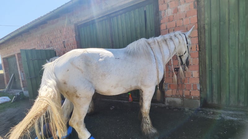 ✨ Piękna klacz rasy Shire – wierny towarzysz rekreacyjny z sercem ✨ Na sprzedaż wystawiamy imponującą klacz rasy Shire, urodzoną w 2009 roku. Ta elegancka siwa klacz wyróżnia się imponującym wzrostem 1,80 m, spokojnym usposobieniem oraz pełnym ciepła charakterem. To idealny koń do rekreacji – niezawodny, przyjazny dla człowieka i o spokojnej, zrównoważonej osobowości. Zarówno pod siodłem, jak i w codziennym kontakcie okazuje się być przyjazna, posłuszna i uważna. Zawsze była pielęgnowana z troską, regularnie szczepiona, odrobaczana i pod opieką weterynarza. Nie stanowi dla niej problemu czyszczenie kopyt ani jazda w przyczepie. Ze względu na brodawkową narośl, którą można dobrze kontrolować przy odpowiedniej pielęgnacji, sprzedajemy ją znacznie poniżej ceny rynkowej – zamiast 6000 € teraz za 3900 €. Ta drobna wada nie wpływa na jej codzienne użytkowanie, wymaga jednak od czasu do czasu regularnej troski podczas pielęgnacji. Idealnie sprawdzi się u doświadczonych jeźdźców poszukujących łagodnego, szczerego i imponującego konia do rekreacji, pracy na lonży lub spokojnych przejażdżek. Dzięki swojej charyzmie i charakterowi jest prawdziwym koniem serca, który obdarza swojego człowieka dużym zaufaniem.