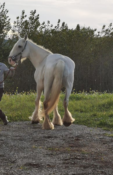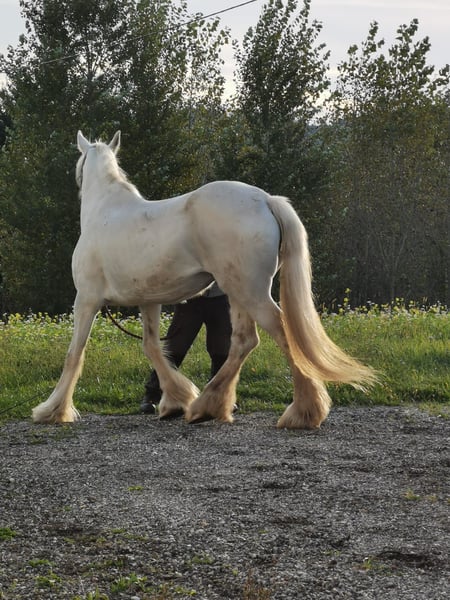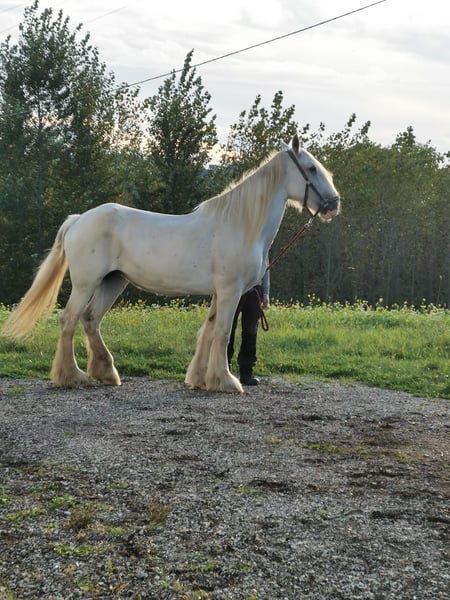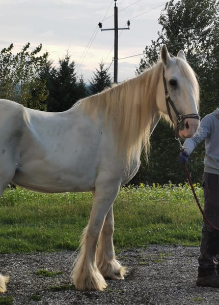 ✨ Shire Merrie – perfect for leisure and enjoyment ✨ For sale is an impressive Shire mare, born in 2009. This elegant grey mare impresses with her imposing appearance, her presence, and her gentle nature. With a height of 169 cm, she is a real eye-catcher and a wonderful horse for leisure riding. In handling, she is friendly and attentive, but she needs time to build trust. She can be somewhat nervous at times, reacts sensitively to changes, and feels most comfortable when she has a consistent handler she trusts. With a calm, firm, and loving approach, she quickly forms a close bond and then shows her true, warm personality. In the right environment, she is a loyal and eager learner horse that brings her owner much joy. Therefore, she is especially suitable for experienced horse people who appreciate a sensitive and refined Shire. Due to her character and sensitivity, she is being offered at a significantly reduced price—instead of €5,900, now €1,900. This price reduction aims to ensure she finds a home where she receives time, calm, and affection to build trust and settle in. With patience, routine, and a stable place in a small, harmonious environment, she can become a wonderful leisure partner and loyal companion. 📍 Viewings and trial rides are available by appointment at any time. If interested, we are happy to provide more information and current photos.