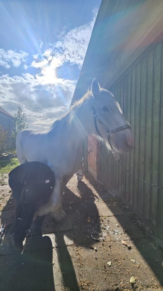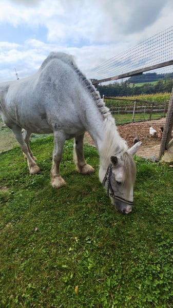 ✨ Elegant Shire Mare – ideal for leisure and enjoyment ✨ For sale is an impressive Shire mare, born in 2002. This beautiful grey mare impresses with her imposing height of 1.80 m, her presence, and her gentle, friendly nature. She is well-trained, calm in handling, and familiar with daily routines on the farm. Whether for relaxed rides, leisurely walks, or simply spending time together in the pasture – she is a reliable and loving companion for those who appreciate a calm, honest horse by their side. Due to her age, she is offered with a health guarantee and at a very favorable price of €900 instead of €5,900. It is important to us that she finds a good, responsible home where she will continue to be lovingly cared for and looked after. She is ideal for horse enthusiasts looking to give a large, experienced Shire horse a wonderful retirement – a horse that enriches everyday life with her calm presence and gentle nature.