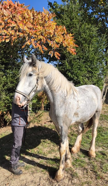 Elegant Shire Horse mare for sale – perfect for leisure and hobby riding! This impressive grey mare was born in 2022 and stands at a height of 17.7 hands. She is a true highlight for horse enthusiasts seeking a calm and friendly partner. The Shire Horse mare is renowned for her serenity and balanced temperament, making her a reliable companion for recreational riding. The horse is healthy, regularly vaccinated, and well cared for. She is human-oriented and friendly in handling. If you are interested or have any questions, please feel free to contact me. I would be happy to arrange a viewing and a test ride! I look forward to hearing from you!