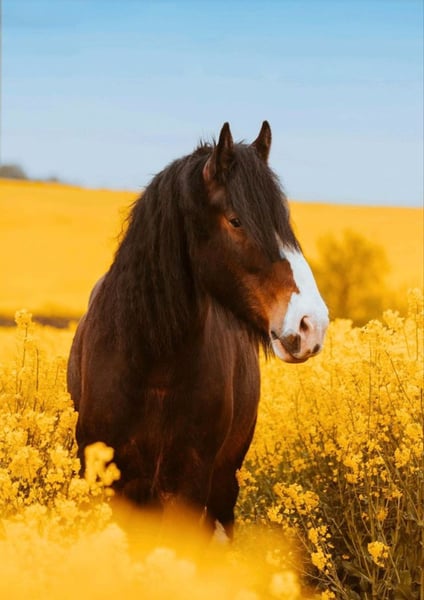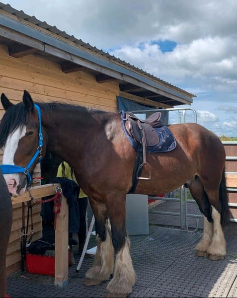 Here is my 9-year-old Shire Horse gelding, Marlow, for sale. Registered Name: Emma's Marlow. Age: Born on April 11, 2016. 9 years old. Height: Approximately 16.2 hh. Ridden in all three gaits for leisure riding. Handles well in the arena, in the indoor riding hall, and in the field. Rides comfortably both in a group and alone in the terrain. A big cuddle bug who is always very calm, sensible, and easy to handle. Works on the longe and double longe and is familiar with ground work. Regularly vaccinated, dewormed, with biannual osteopathic check-ups, annual dental care, and routine saddle checks. Knows herds both consisting solely of geldings and mixed herds with mares and geldings. Good with the farrier, veterinarian, and trailer loading. Kept in an open stable system and only knows this type of housing. Sold with all accessories (saddle, girth, lunging equipment, bridle, halter, grooming tools, cooler, etc.). Only sold in an open stable system. No installment payments! Price is not negotiable! To prevent tourism riding, a trial ride fee of €50 is charged. This amount will be deducted from the purchase price.