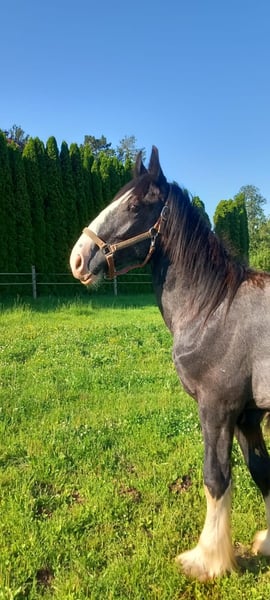 Dziękujemy za zainteresowanie naszym ogierkiem Shire Horse Magnus. Magnus urodził się latem 2023 roku i wkrótce będzie mógł wprowadzić się do odpowiedniego dla gatunku, nowego domu w towarzystwie koni. Dorastał w stadzie i codziennie spędza dużo czasu ze swoimi towarzyszami zabaw. Magnus to bystry i bezczelny ogier, który lubi testować swoje granice, ale nigdy się nie złości. Chcielibyśmy jednak znaleźć mu nowy dom z końskim doświadczeniem, gdyż Magnus bez wątpienia będzie imponującym przedstawicielem swojej rasy. Już teraz wykazuje piękne chody oraz dużo temperamentu i zapału. Jesteśmy przekonani, że – przy odpowiednim wsparciu – stanie się fantastycznie pięknym koniem wierzchowym/rekreacyjnym. Oczywiście do jazdy konnej pozostało jeszcze kilka lat (). Jest zdecydowanie ciekawy, zabawny i odważny. Jest już bardzo niezależny i robi wycieczki po rozległych pastwiskach poza zasięgiem wzroku matki. Odwiedza ją tylko od czasu do czasu, aby się napić, poza tym woli bawić się ze swoimi przyjaciółmi źrebiętami. W zależności od swojego wieku, Magnus jest albo bardzo dobrze wychowany u kowala, albo trochę irytujący, kopyto jest pilnie ćwiczone razem ze zwykłym źrebięciem ABC Ponieważ urodził się w naszym gospodarstwie i nie było żadnych wymagań (medycznych), aby go przewieźć tak daleko, nie było jeszcze potrzeby jazdy z przyczepą. Oczywiście można to odpowiednio przećwiczyć. Jeśli jesteś zainteresowany, czekamy na wiadomość od Ciebie w sprawie Magnusa.