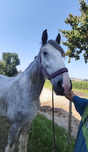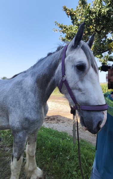 ✨ Étalon de Shire – impressionnant, amical et doté d’un caractère fort ✨ Nous proposons à la vente un magnifique étalon de Shire, né en 2022. Ce splendide gris perle se distingue par sa taille impressionnante de 1,80 m, son allure élégante et son tempérament calme et équilibré. Il séduit par son caractère doux et sa volonté d'apprendre – un véritable eye-catcher, qui impressionne par son charisme et sa nature amicale. Au quotidien, il se montre attentif, proche de l’humain et facile à vivre. L’étalon est en bonne santé, régulièrement vacciné et vermifugé. Il convient parfaitement à des cavaliers expérimentés, qui prennent plaisir à continuer son dressage et à favoriser son développement. Étant un étalon non castré, la opération de castration coûtera environ 2 000 €, ce qui explique son prix nettement inférieur à sa valeur initiale – au lieu de 8 500 €, il est proposé à 4 900 €. Cette réduction de prix vise à assurer qu’il trouve des mains responsables, où il pourra continuer à évoluer et à recevoir les soins appropriés. Avec son allure impressionnante, son tempérament calme et ses solides bases, c’est un cheval idéal pour ceux qui recherchent quelque chose d’exceptionnel – un Shire Horse avec du cœur, de la force et beaucoup de potentiel.