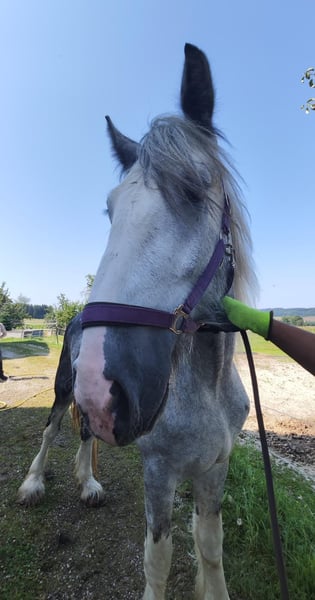 ✨ Shire Horse WALLACH – imposant, frech und charakterstark ✨ Zum Verkauf steht ein beeindruckender Shire Horse Wallach geboren im Jahr 2022. Dieser prachtvolle Schimmel besticht durch seine elegante Erscheinung und tollen Gangarten. Er weiß ich in Szene zu setzen. Zur Zeit hat er ein Stockmaß von 1,80m. Er ist echter Hingucker, der durch seine Ausstrahlung und sein keckes Wesen begeistert. Im täglichen Umgang zeigt er sich etwas vorlaut und ist derzeit voll in der Pubertät. Seit kurzem ist er Wallach. (War Klopphengst) Er eignet sich ideal für erfahrene Pferdemenschen, die Freude daran haben, ihn weiter auszubilden und zu fördern. Und mit seinem außergewöhnlichen Gängen wird er bestimmt mal ein tolles Reitpferde. Bitte zu bedenken dass Shire Horse spät Entwickler sind und nicht vor 5 Jahren begonnen werden sollen mit dem Beritt