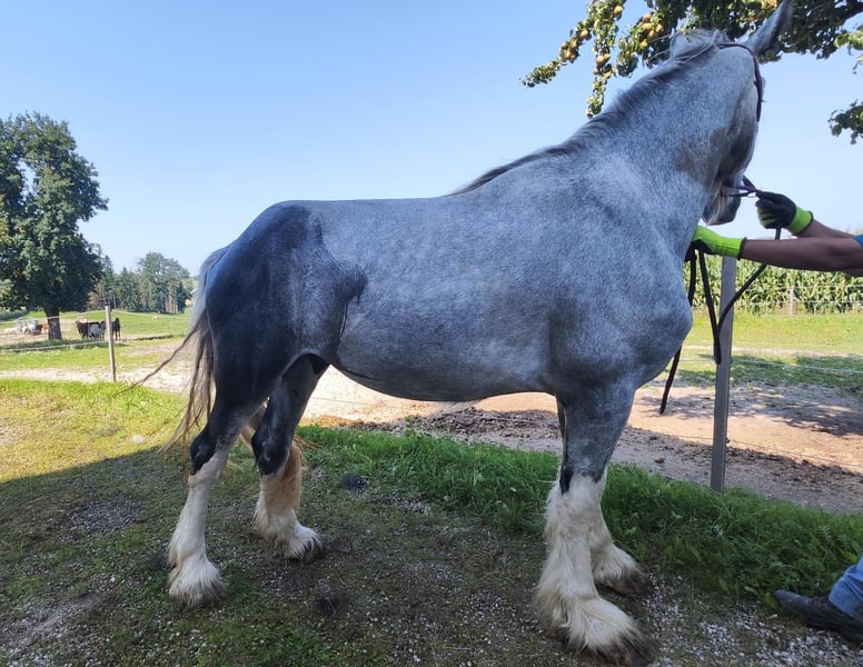✨ Stallone di Shire – imponente, amichevole e dal carattere forte ✨ In vendita un impressionante stallone di Shire, nato nel 2022. Questo splendido grigio si distingue per il suo statura imponente di 1,80 m, la sua elegante presenza e il suo temperamento calmo e equilibrato. Si distingue per il suo carattere gentile e la voglia di imparare – un vero colpo d'occhio, che conquista per la sua presenza e il suo carattere amichevole. Nel quotidiano si mostra attento, socievole e facile da gestire. Lo stallone è in buona salute, regolarmente vaccinato e dewormed. È ideale per persone esperte, che desiderano continuare a educare e valorizzare un grande Shire Horse. Poiché si tratta di un stallone da monta e l’operazione di castrazione costerà circa 2.000 €, viene venduto a un prezzo notevolmente inferiore – invece di 8.500 €, ora a 4.900 €. Questa riduzione di prezzo mira a garantirne un affidamento a persone responsabili, che si prendano cura della sua crescita e del suo benessere. Con la sua presenza imponente, il carattere tranquillo e una buona base di formazione, è un cavallo ideale per chi cerca qualcosa di speciale – uno Shire Horse con cuore, forza e grande potenziale.