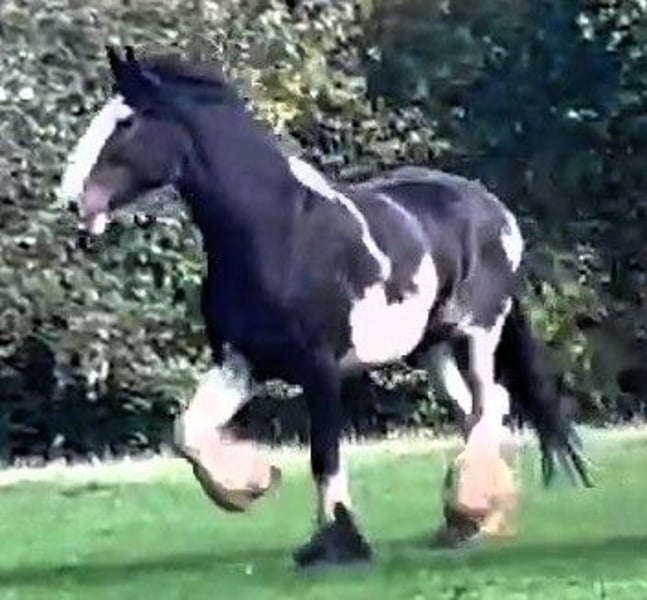 Big impressive Shire gelding. Very good looking and unique. Has been professionally trained for driving. www.shiresandclydesdales.com UK and worldwide - transport arranged.