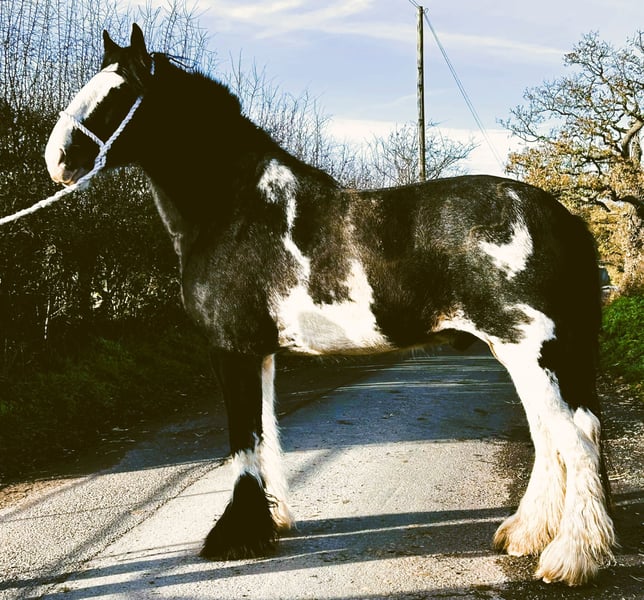 This unique and colourful gelding has been professionally trained for driving. Good temperament, Good with other horses. STUNNINGLY good looking - www.shiresandclydesdales.com sheila@shiresandclydesdales.com The home of champions Videos available.